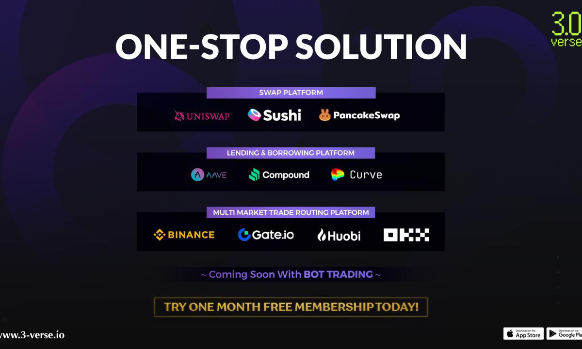 In the dynamic world of large number of trading platforms and cryptocurrencies, the need for an intelligent, information driven and comprehensive user-friendly trade routing platform has never been more crucial. Today, 3.0 Verse is extremely happy to unveil from Dubai, its 3.0 Verse solution, a cutting-edge trade routing platform that brings together the best of both Centralized Finance (CeFi) (Binance, Huobi, Gate IO and OKX) and Decentralized Finance (DeFi) (AAVE, Compound, Curve, Uniswap, Sushi swap and Pancake swap).