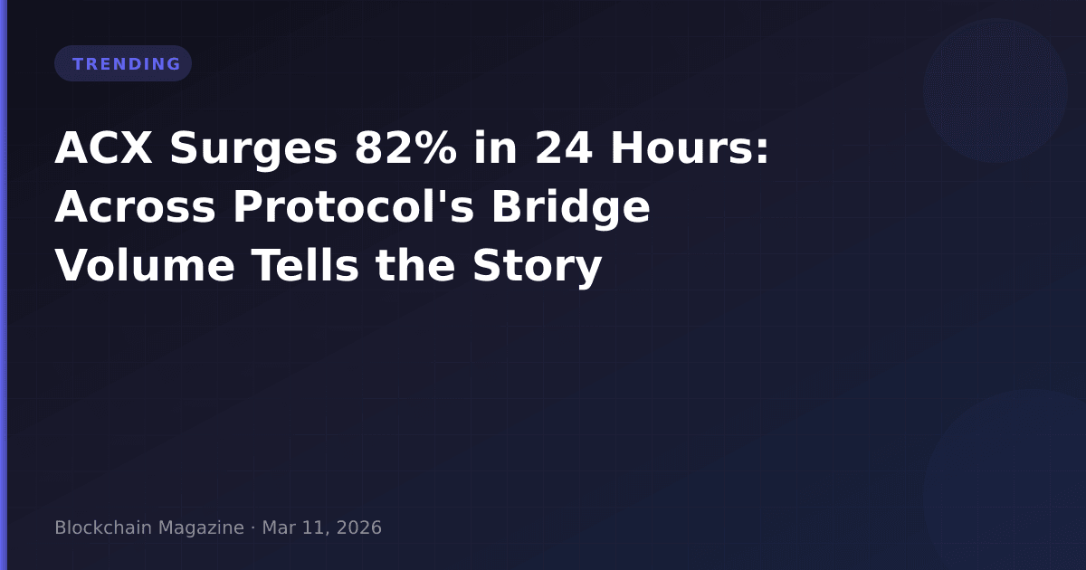 Across Protocol’s ACX token has captured market attention with an 82% price surge in the past 24 hours, climbing to $0.062 as of March 11, 2026. The dramatic rally coincides with trading volume spiking to $71.9 million—a figure that represents approximately 165% of the protocol’s entire market capitalization of $43.5 million. This volume-to-market-cap ratio signals unusual trading intensity that we typically observe during significant protocol developments or broader sector rotations.