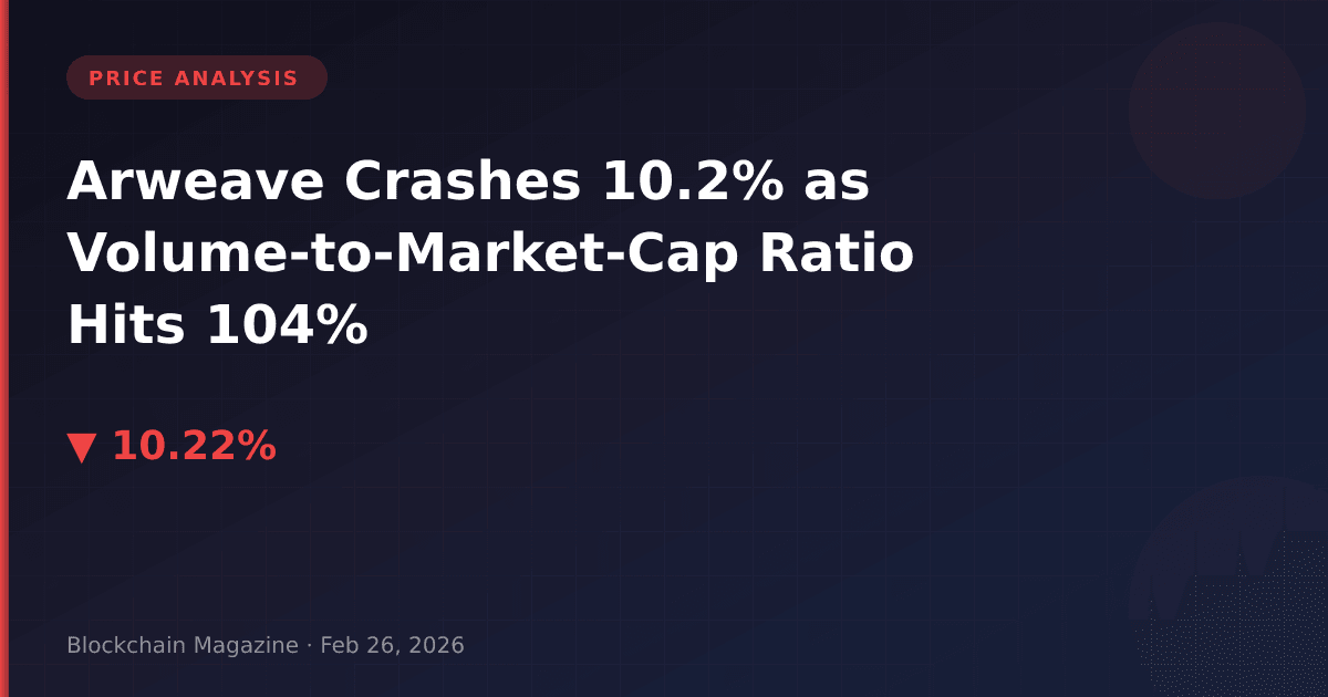 Arweave (AR) dropped 10.2% in the past 24 hours to trade at $1.74, erasing $12.9 million in market capitalization as trading volume reached $118.2 million—remarkably, exceeding the project’s entire market cap of $113.6 million. This extraordinary volume-to-market-cap ratio of 104% immediately caught our attention as a potential liquidity event or coordinated selling pressure.