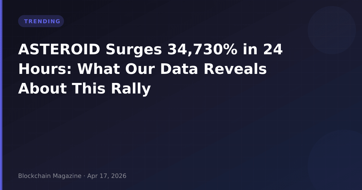 In what represents one of the most dramatic single-day moves we’ve tracked in the meme coin sector this quarter, Asteroid Shiba (ASTEROID) has surged 34,730% over the past 24 hours as of April 17, 2026. More remarkably, our data shows the token’s trading volume has reached $57.1 million while maintaining a market capitalization of only $17.6 million—a volume-to-market-cap ratio of 3.25x that immediately flags this as an exceptional market event requiring deeper analysis.