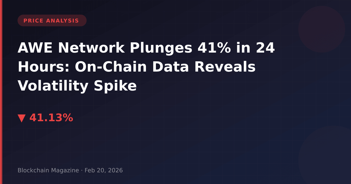 AWE Network (AWE) has recorded one of the most significant single-day declines among mid-cap cryptocurrencies in February 2026, plummeting 41.1% to $0.058712 in the past 24 hours. The sharp correction wiped out $79.8 million in market capitalization, reducing the network’s valuation to $113.9 million and pushing it to rank #249 by market cap. More concerning than the price action itself is what our analysis of volume patterns and historical data reveals about the sustainability of recent gains.