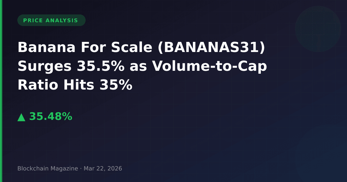 Banana For Scale (BANANAS31) has emerged as one of the most volatile performers in the mid-cap cryptocurrency space, posting a 35.5% gain in the past 24 hours to reach $0.01289. What caught our attention wasn’t merely the price action, but rather the volume dynamics: $44.8 million in trading volume against a $128.6 million market cap represents a 35% ratio—significantly above the 10-15% threshold we typically observe for sustained rallies.