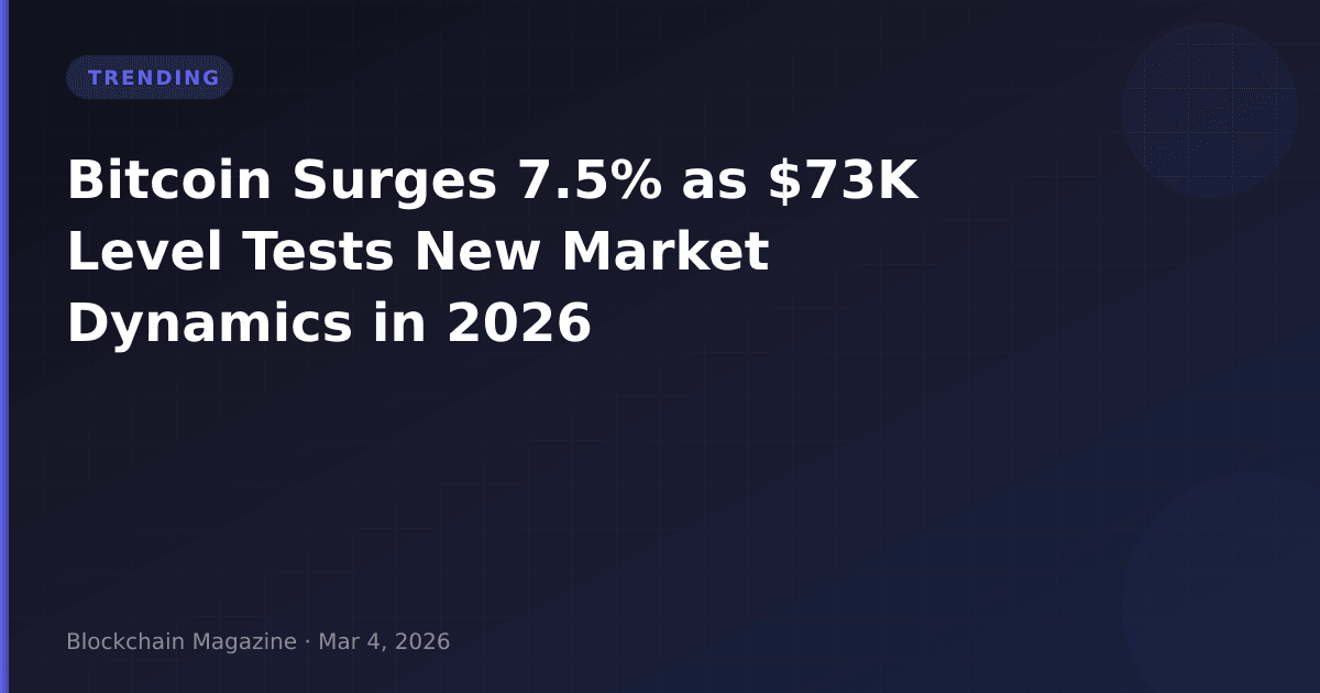 Bitcoin’s 7.5% surge to $73,313 on March 4, 2026, represents more than just another volatility spike—it’s a data point that challenges prevailing market narratives. While the price movement itself commands attention, our analysis of underlying metrics reveals a market structure that differs significantly from previous rally cycles, with implications that extend beyond short-term trading dynamics.