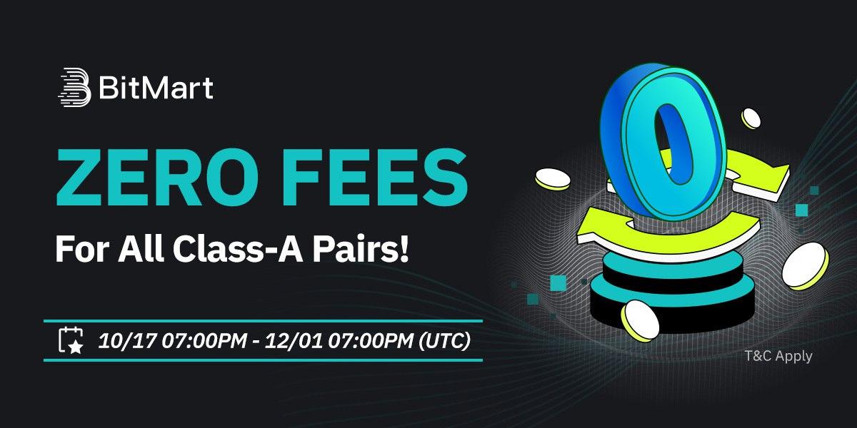 October 19, 2023 (Jersey City, NJ) – BitMart, the premium cryptocurrency exchange and blockchain ecosystem, announced the launch of its new Zero Fee campaign, offering zero trading fees for Makers on all Class-A pairs, including Bitcoin, Ethereum, Ripple, Cardano, Dogecoin, and Polygon, to name a few.