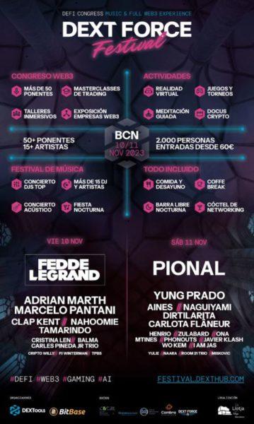 The Dext Force Festival is organized by DEXTools, the world’s leading DeFi finance app, whose creators from Asturias and Galicia (Spain) are considered by FORBES magazine as part of the 100 most creative Spaniards in the business world, and in close collaboration with its partner BitBase, the largest network of cryptocurrency ATMs in Spain. Without a doubt, two major players in the Web3 world who know their audience well.