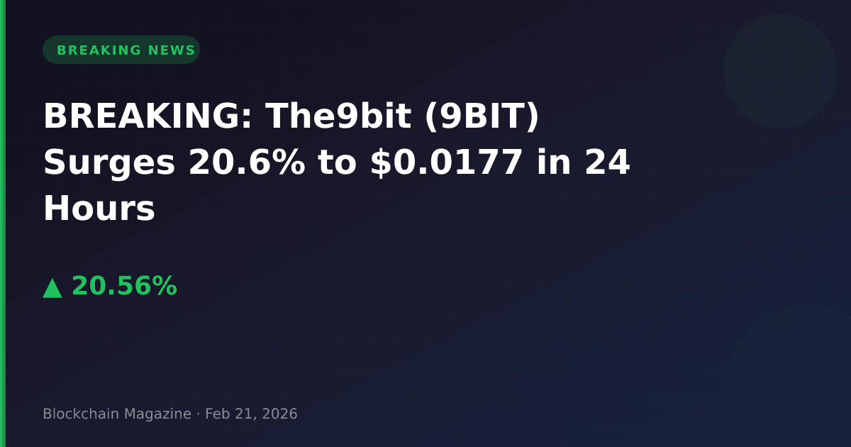 The9bit (9BIT) has experienced a significant price surge of 20.6% in the past 24 hours, reaching $0.01774883 as of February 21, 2026, at 04:22 UTC. The cryptocurrency’s rally comes alongside substantial trading volume and marks a notable continuation of its month-long uptrend.