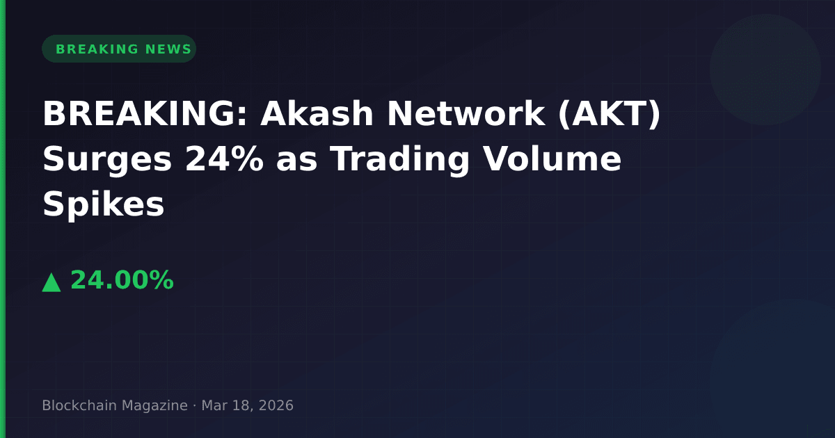 BREAKING: Akash Network (AKT) has exploded 24% higher in the past 24 hours, reaching $0.57553 as of 10:22 AM UTC on March 18, 2026, according to real-time market data.