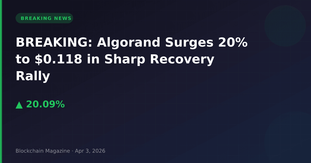 BREAKING: Algorand (ALGO) has surged 20.1% in the past 24 hours, trading at $0.118134 as of April 3, 2026, in a dramatic recovery rally that has added nearly $170 million to its market capitalization.