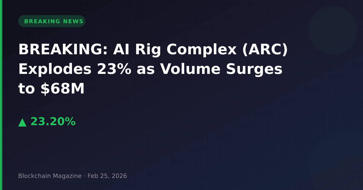 AI Rig Complex (ARC) has surged 23.2% in the past 24 hours, reaching $0.11604 as trading volume exploded to $68.06 million, signaling intense market interest in the AI infrastructure token.