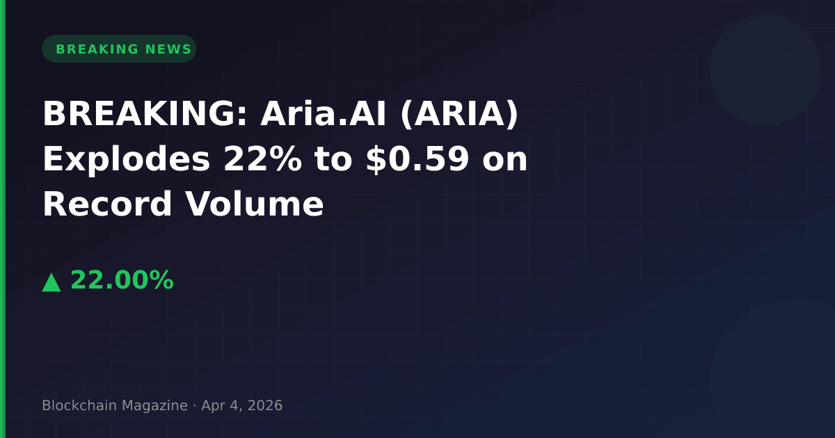 April 4, 2026 – Aria.AI (ARIA) has experienced a dramatic surge of 22% in the past 24 hours, reaching $0.589025 and pushing its market capitalization to $106.8 million, according to real-time market data.