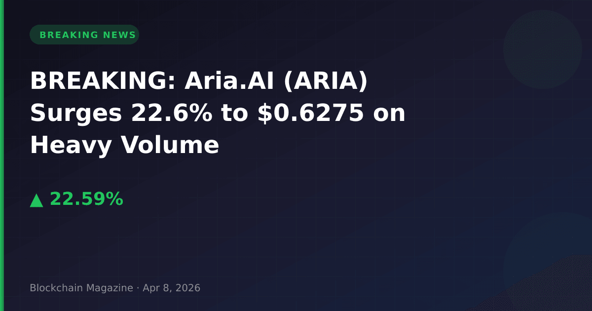 April 8, 2026 – 14:37 UTC – Aria.AI (ARIA) has posted significant gains in the past 24 hours, surging 22.6% to reach $0.627521 as trading activity intensifies across cryptocurrency exchanges.
