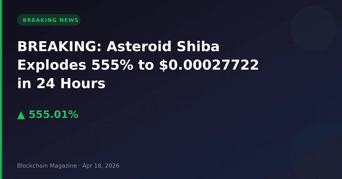 Asteroid Shiba (ASTEROID) has exploded 555% in the past 24 hours, reaching $0.00027722 as of 20:37 UTC on April 18, 2026. The meme coin’s dramatic price movement has pushed its market capitalization to $124.16 million, ranking it #257 among all cryptocurrencies.
