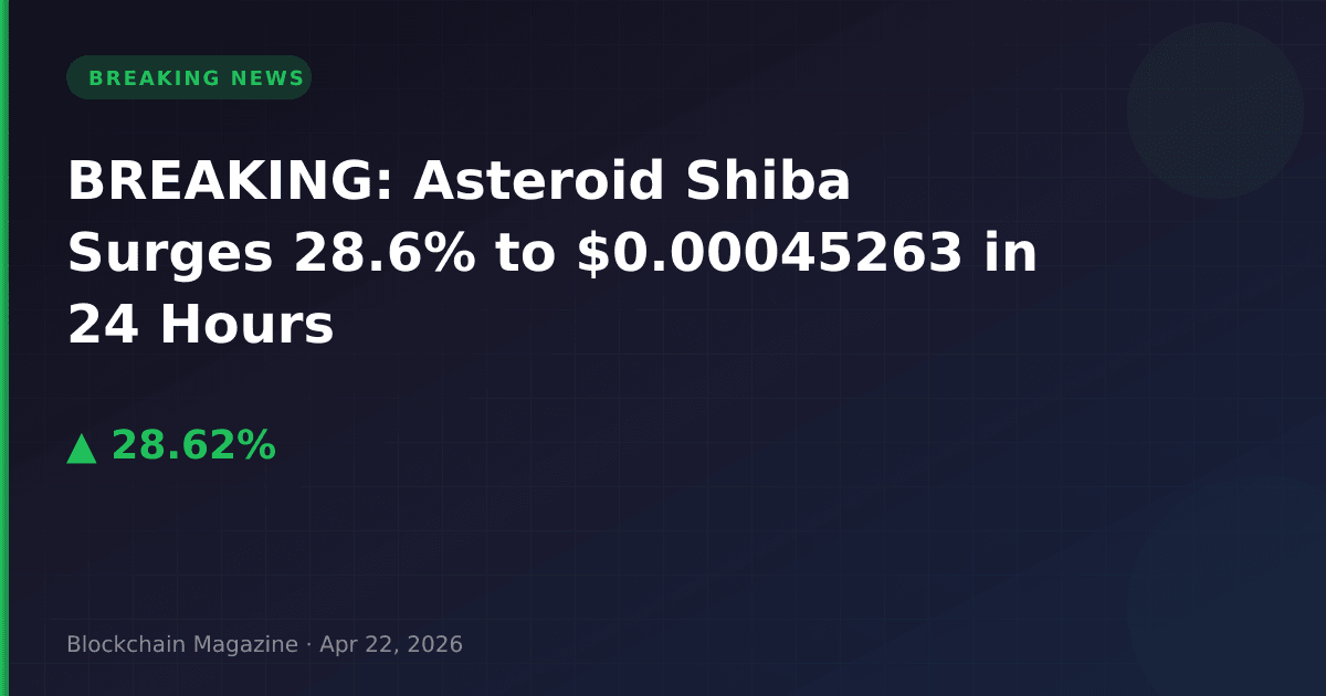 Asteroid Shiba (ASTEROID) has surged 28.6% in the past 24 hours, reaching a current price of $0.00045263 as of April 22, 2026, according to live market data. The meme coin’s dramatic price movement comes amid intense trading activity, with $56.5 million in volume recorded over the period.