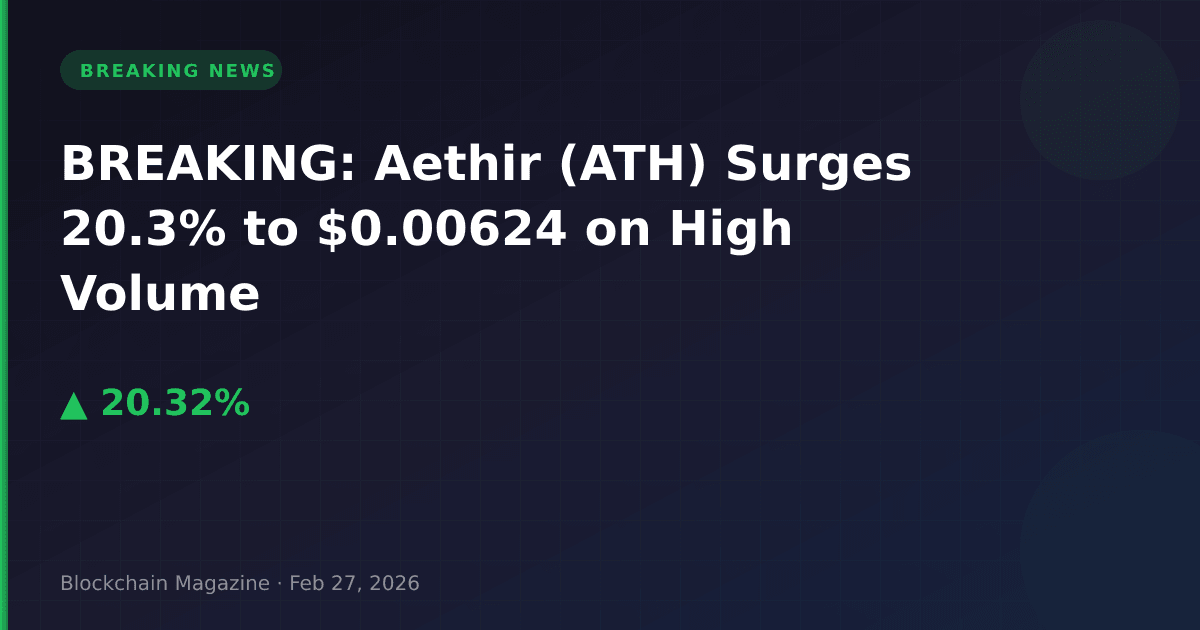 Aethir (ATH), a decentralized GPU cloud infrastructure token, has experienced a significant price surge of 20.3% in the past 24 hours, reaching $0.00624169 as of February 27, 2026. The sharp upward movement comes amid heightened trading activity in the decentralized infrastructure sector.