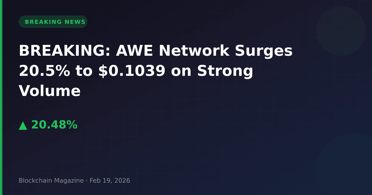 AWE Network (AWE) has exploded 20.5% in the past 24 hours, reaching $0.1039 as of February 19, 2026, with trading volume surging to $44.1 million.