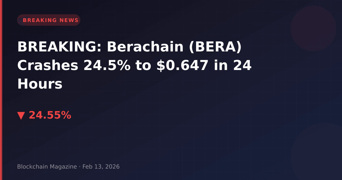 Berachain (BERA) is experiencing severe selling pressure on February 13, 2026, with the token plummeting 24.5% to $0.647179 in the past 24 hours. The dramatic decline has erased over $40.7 million from its market capitalization, which now stands at approximately $138.4 million.
