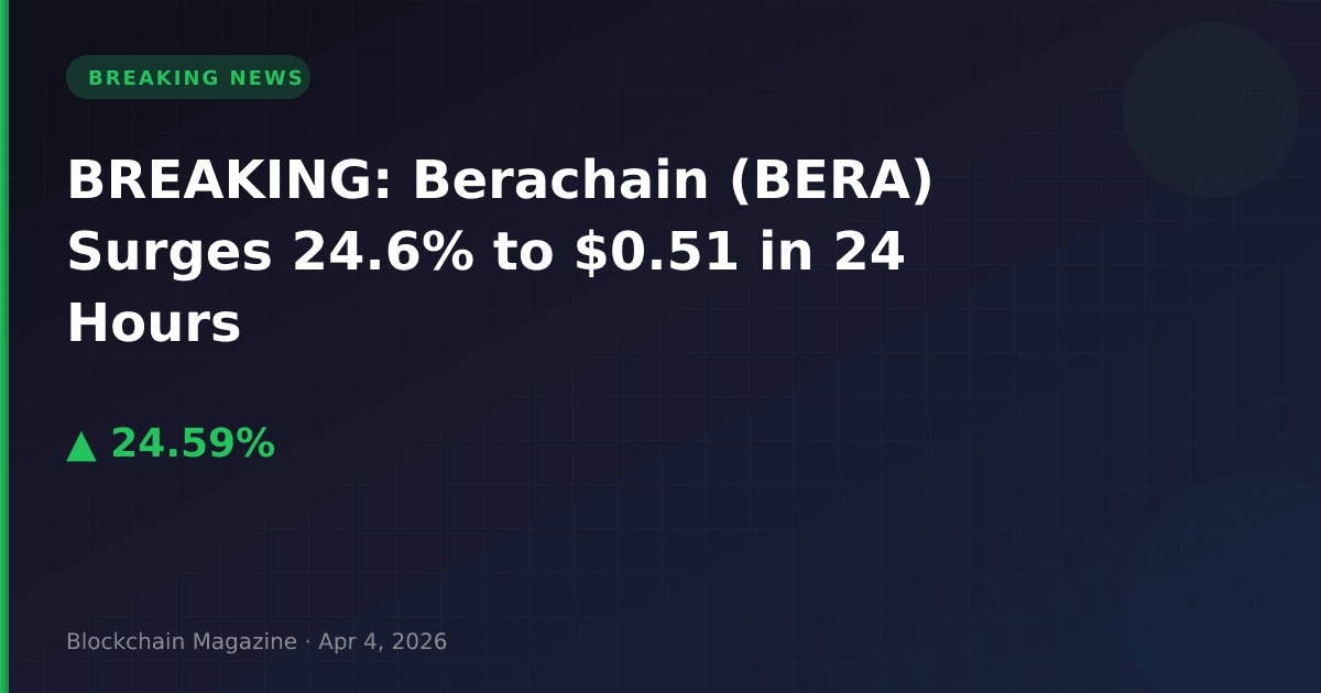 BREAKING: Berachain (BERA) has experienced a dramatic 24.6% price surge in the past 24 hours, trading at $0.513192 as of 11:52 AM UTC on April 4, 2026, according to live market data.