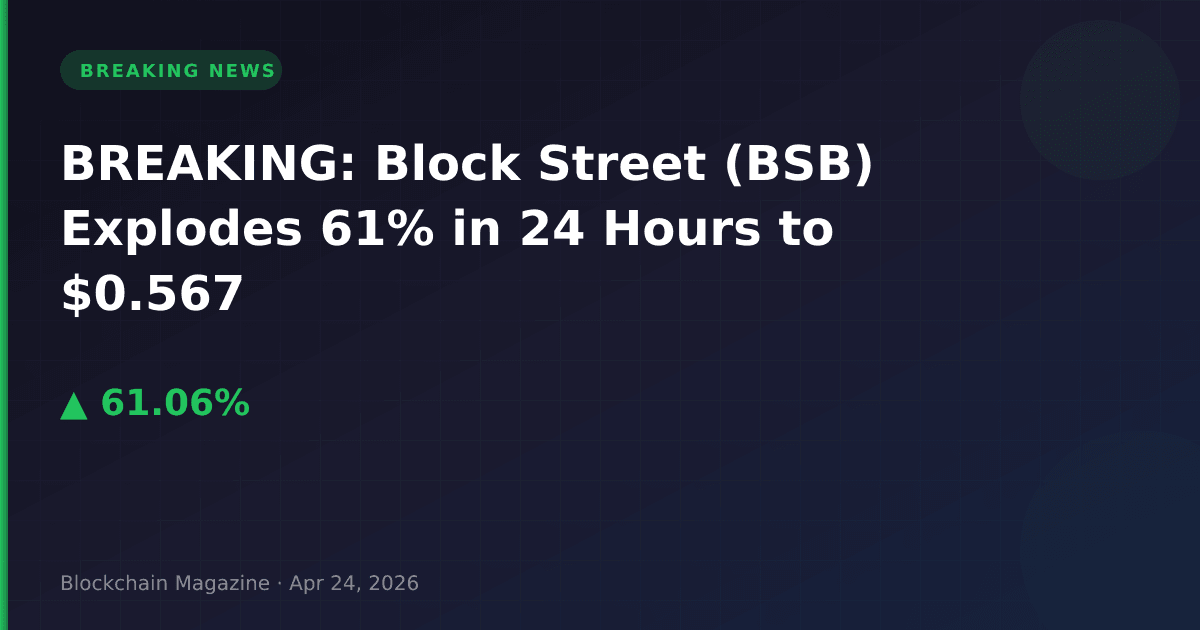 Block Street (BSB) has emerged as one of the top-performing cryptocurrencies on April 24, 2026, surging 61.1% in the past 24 hours to reach $0.567441, according to real-time market data.
