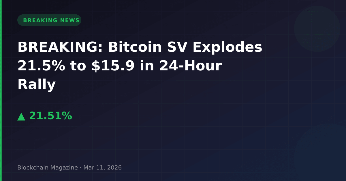 Bitcoin SV (BSV) has recorded a dramatic 21.5% price increase over the past 24 hours, climbing to $15.90 and marking one of the most significant single-day rallies among major cryptocurrencies on March 11, 2026.