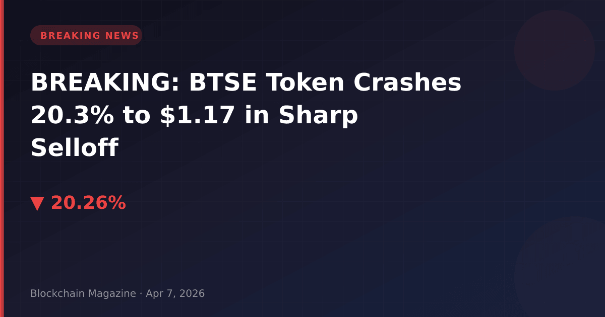 BTSE Token (BTSE) has plunged 20.3% in the past 24 hours, falling from $1.48 to $1.17 as of 02:52 UTC on April 7, 2026, according to live market data.