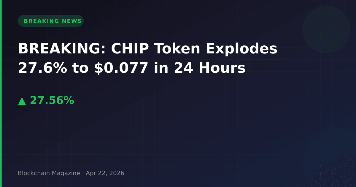 CHIP token has experienced a dramatic price surge, climbing 27.6% in the past 24 hours to reach $0.077612 as of 6:07 AM UTC on April 22, 2026. The token is currently trading just below its all-time high of $0.076988, set earlier today.