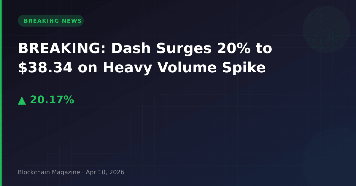 Dash (DASH) has experienced a significant price surge, climbing 20.2% in the past 24 hours to reach $38.34 as of 02:22 UTC on April 10, 2026, according to market data.