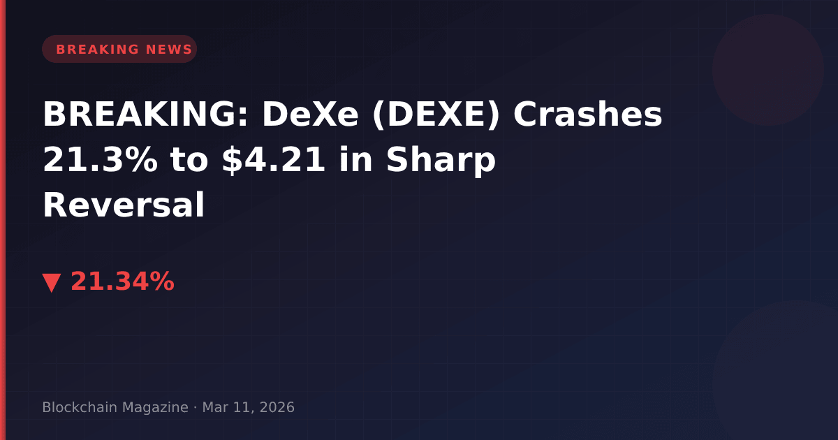 BREAKING: DeXe (DEXE), a decentralized governance platform token, has crashed 21.3% in the past 24 hours, dropping to $4.21 as of 5:22 AM UTC on March 11, 2026. The sharp decline has wiped $52.4 million from its market capitalization, now standing at $197.6 million.