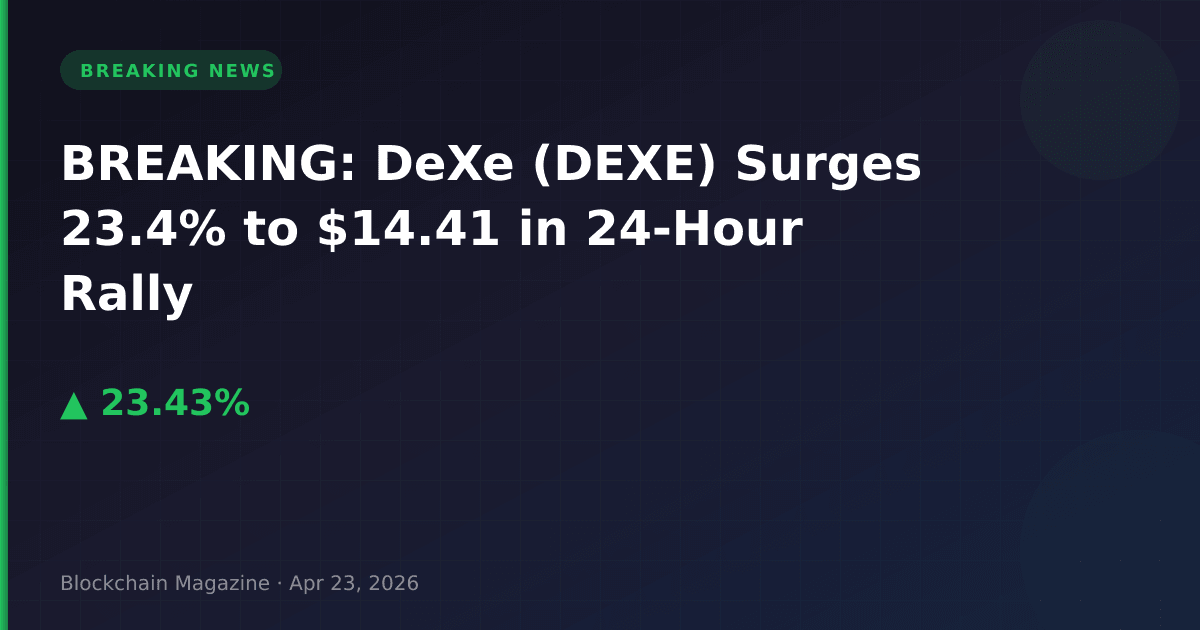 DeXe (DEXE) has surged 23.4% in the past 24 hours, trading at $14.41 as of 2:06 PM UTC on April 23, 2026. The dramatic price movement has elevated the DAO governance platform’s market capitalization to $679.6 million, representing a 26.4% increase of $141.8 million in a single day.