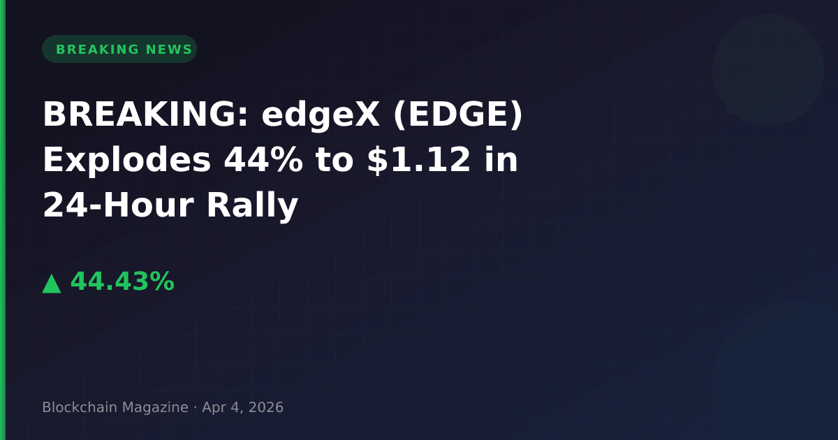 edgeX (EDGE) has surged 44.4% in the past 24 hours, reaching $1.12 as of 00:07 UTC on April 4, 2026, in a dramatic rally that pushed its market capitalization above $397 million.