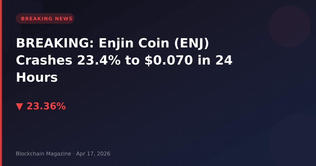 Enjin Coin (ENJ), a blockchain platform focused on gaming and NFTs, has experienced a severe selloff, plunging 23.4% to $0.070369 in the past 24 hours as of April 17, 2026, 1:37 PM UTC.