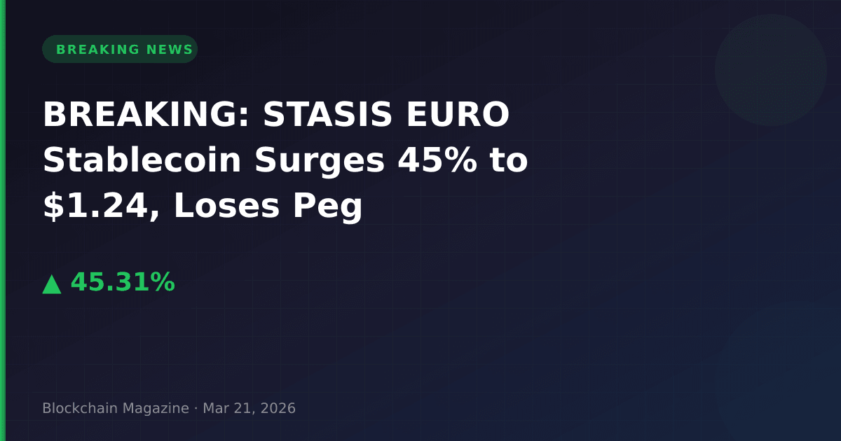 STASIS EURO (EURS), a euro-backed stablecoin, has surged 45.3% to $1.24 in the past 24 hours, raising critical questions about the stability mechanism of one of the cryptocurrency market’s established euro-pegged assets.