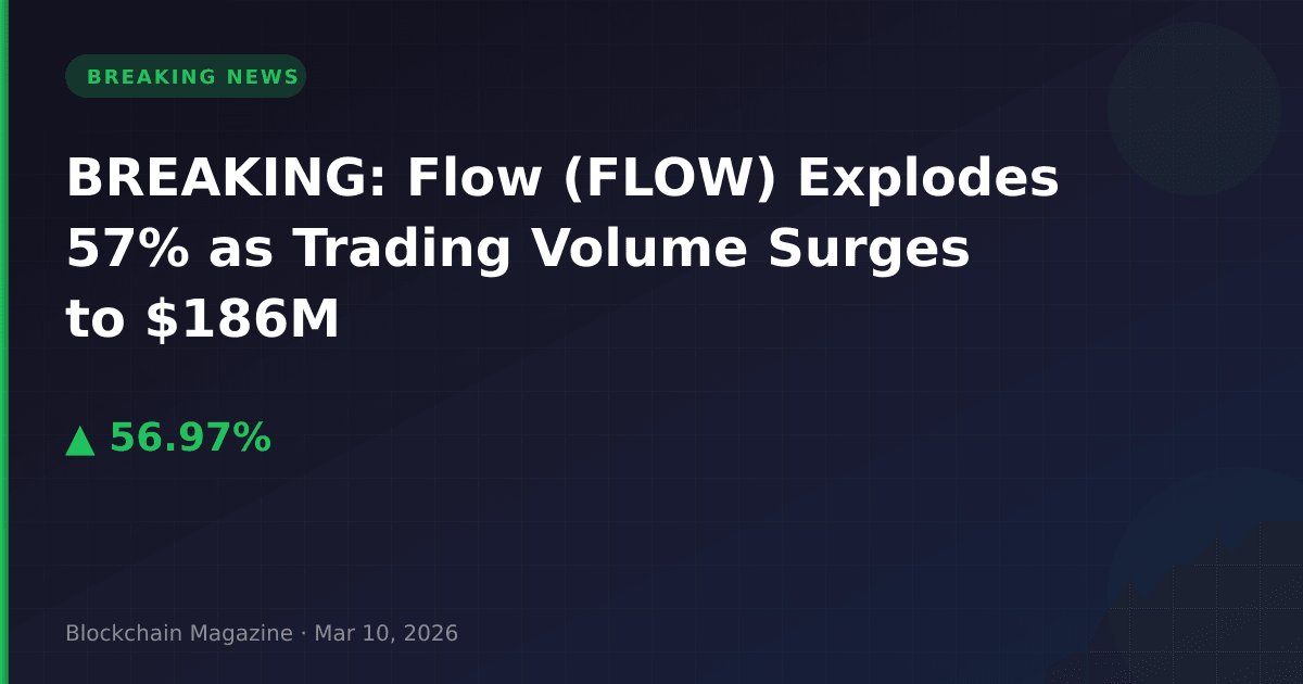 Flow (FLOW) has experienced a dramatic 57% price surge in the past 24 hours, climbing from $0.044 to $0.069 as of March 10, 2026, at 09:22 UTC.