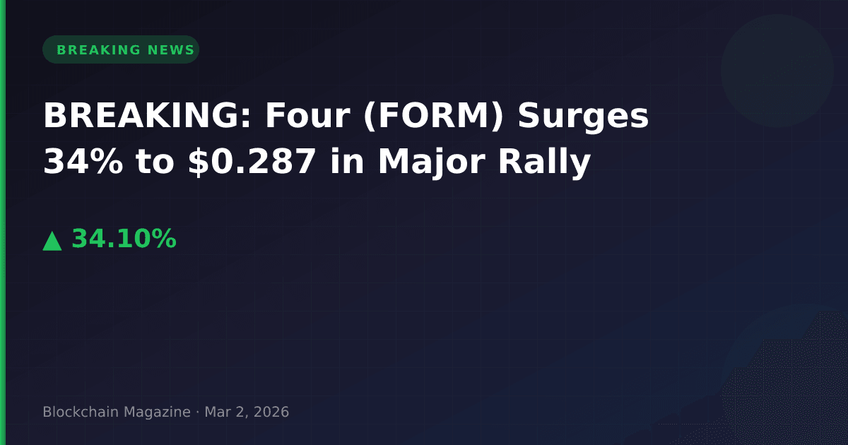 BREAKING: Four (FORM), a cryptocurrency project, has experienced a dramatic 34.1% price surge in the past 24 hours, reaching $0.28724 as of March 2, 2026, at 18:37 UTC.