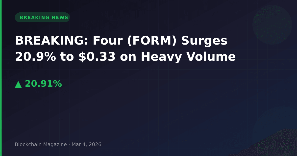 BREAKING: Four (FORM) has exploded 20.9% higher in the past 24 hours, reaching $0.330836 as of March 4, 2026, amid substantial trading volume of $59.5 million.