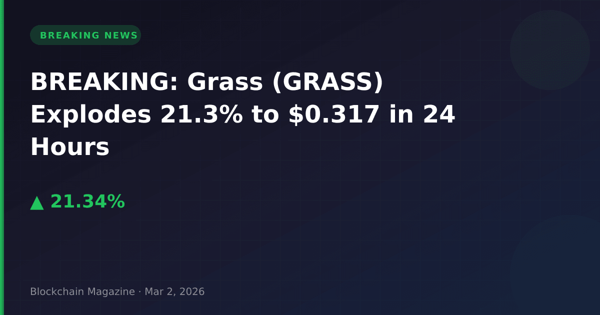 March 2, 2026, 2:52 PM UTC — Grass (GRASS), a decentralized physical infrastructure network (DePIN) token, has surged 21.34% in the past 24 hours to reach $0.317103, according to real-time market data.