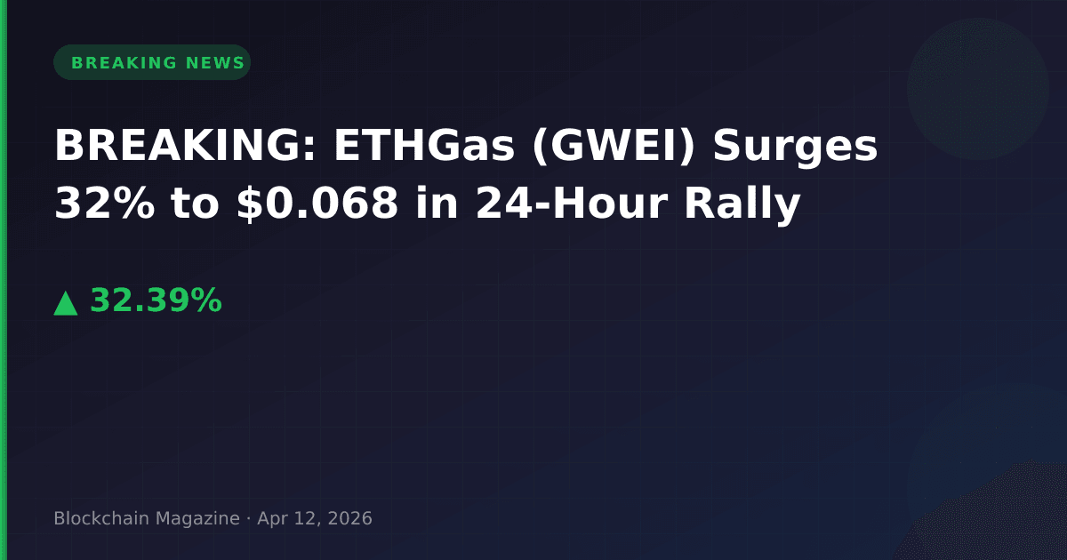 ETHGas (GWEI) has experienced a dramatic 32.4% price surge in the past 24 hours, reaching $0.068116 as of April 12, 2026, marking one of the most significant single-day rallies for the Ethereum gas token.