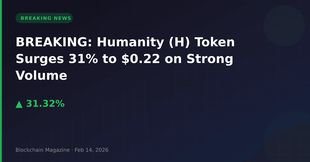 Humanity (H) token has experienced a significant price surge, climbing 31.3% in the past 24 hours to reach $0.218603, according to the latest market data.