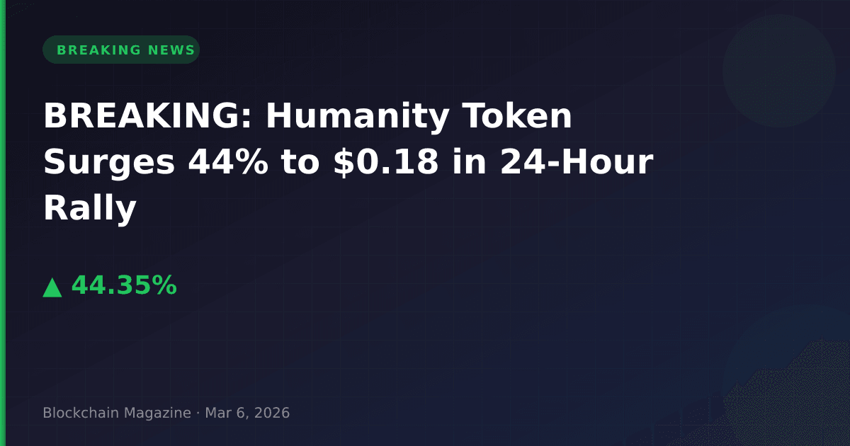 BREAKING: Humanity (H) token has surged 44.35% in the past 24 hours, reaching $0.180294 as of March 6, 2026, according to real-time market data.