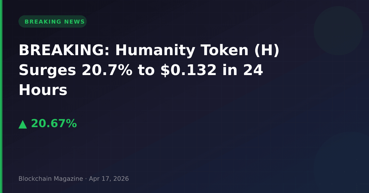 April 17, 2026 — Humanity (H) token has experienced a significant price surge, jumping 20.7% in the past 24 hours to reach $0.132239, according to the latest market data.