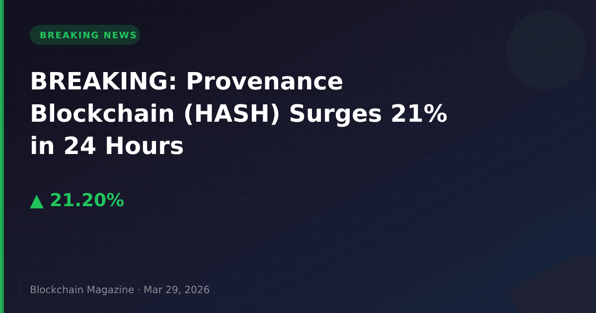 March 29, 2026 — Provenance Blockchain (HASH) has experienced a significant price surge, climbing 21.2% in the past 24 hours to reach $0.01383914, according to real-time market data.