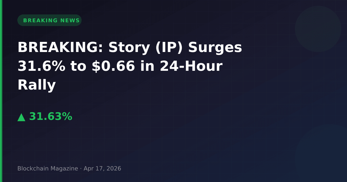 Story Protocol (IP) has surged 31.6% in the past 24 hours, climbing to $0.662362 as of April 17, 2026, marking one of the strongest single-day performances among top-200 cryptocurrencies.