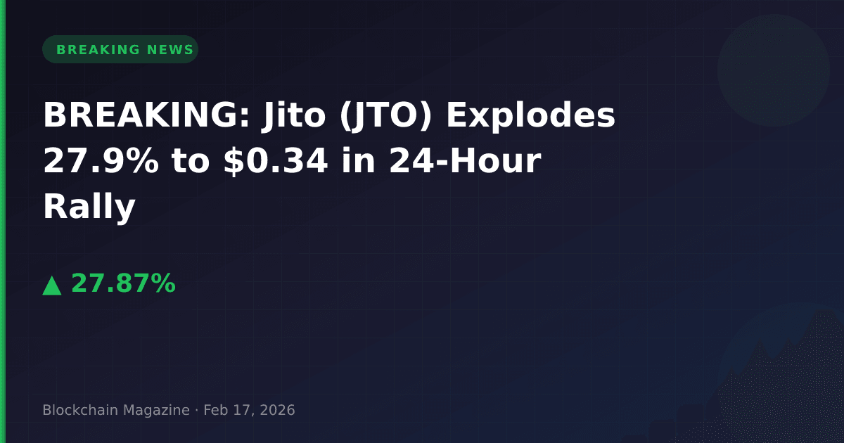 Jito (JTO), the governance token for Solana’s leading MEV (Maximum Extractable Value) infrastructure protocol, has surged 27.9% in the past 24 hours, reaching $0.33994 as of February 17, 2026.