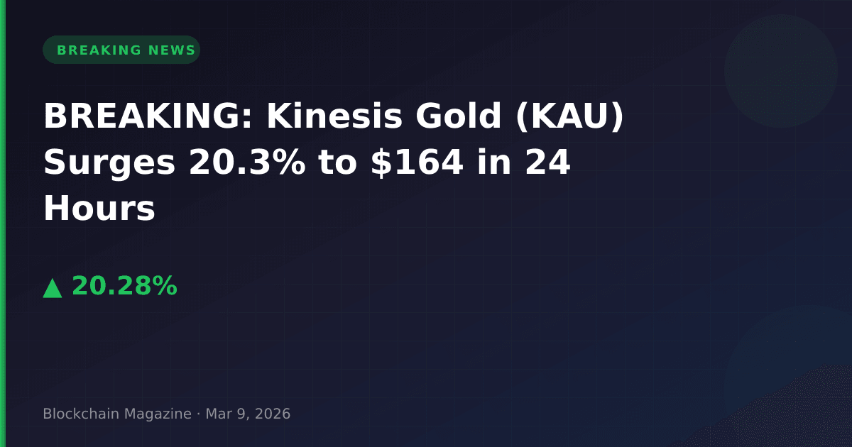 BREAKING NEWS – Kinesis Gold (KAU), a cryptocurrency backed by physical gold, has experienced a dramatic 20.3% price surge in the past 24 hours, reaching $164 as of March 9, 2026, at 16:52 UTC.
