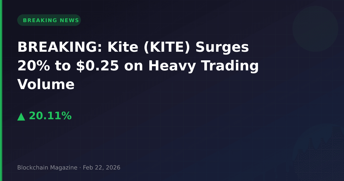 February 22, 2026 – Kite (KITE) has surged 20.1% in the past 24 hours, reaching $0.253654 and capturing significant market attention with trading volume exceeding $217 million.