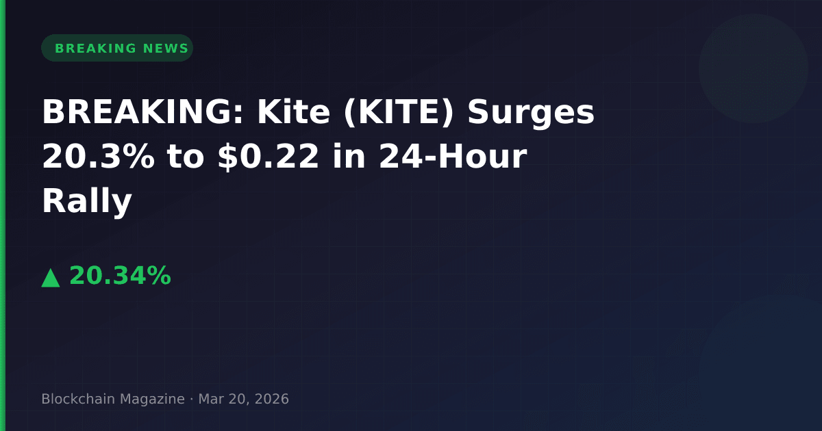 Cryptocurrency market watchers are tracking a sharp price movement in Kite (KITE) as the token surged 20.3% over the past 24 hours, reaching $0.222665 as of March 20, 2026, at 10:51 UTC.