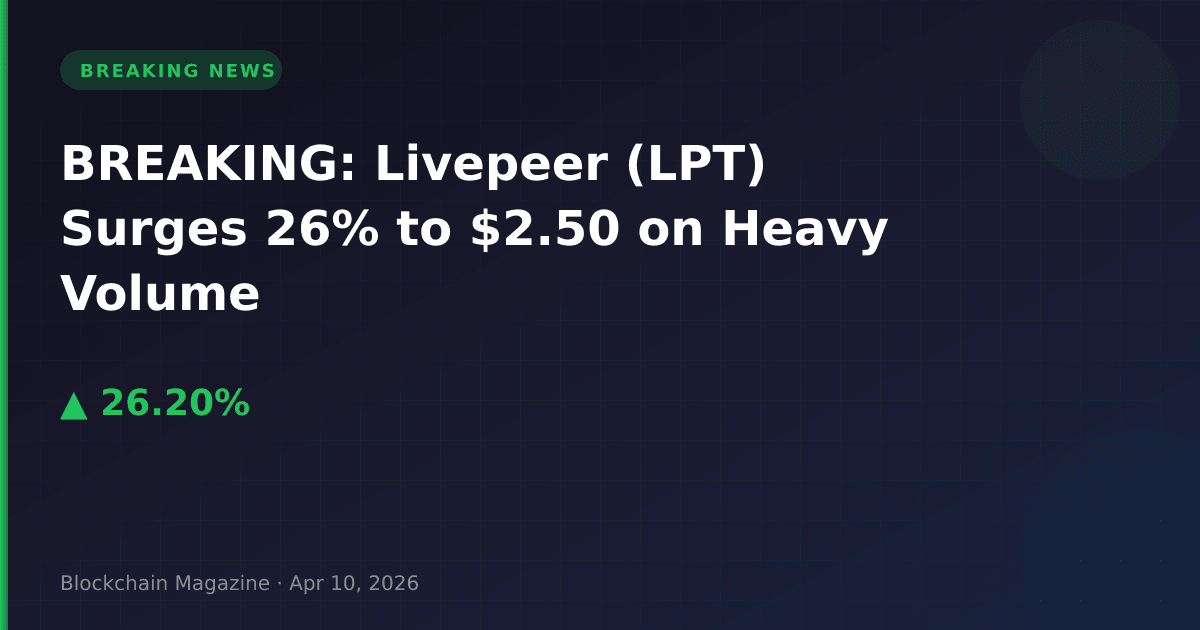 Livepeer (LPT), the decentralized video infrastructure protocol, has posted explosive gains of 26.2% over the past 24 hours, reaching $2.50 as of April 10, 2026, at 14:37 UTC.