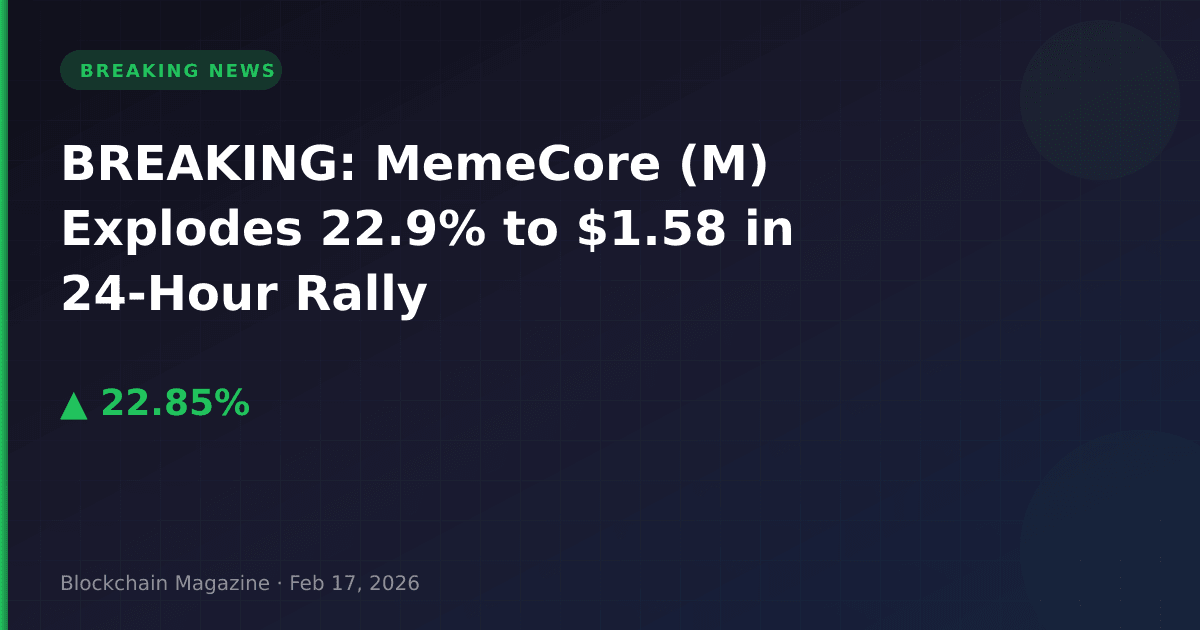 MemeCore (M) has exploded 22.9% in the past 24 hours, reaching $1.58 as of February 17, 2026, 4:37 AM UTC, marking one of the strongest single-day performances among top-50 cryptocurrencies.