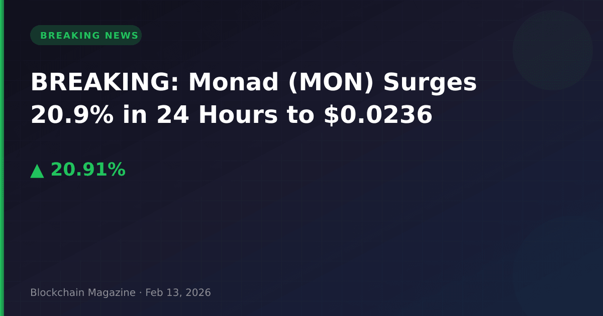 Monad (MON) has surged 20.9% in the past 24 hours, climbing to $0.02359632 as of February 13, 2026, 7:06 PM UTC, according to live market data. The rally comes with substantial trading volume of $119.27 million, indicating strong market participation.