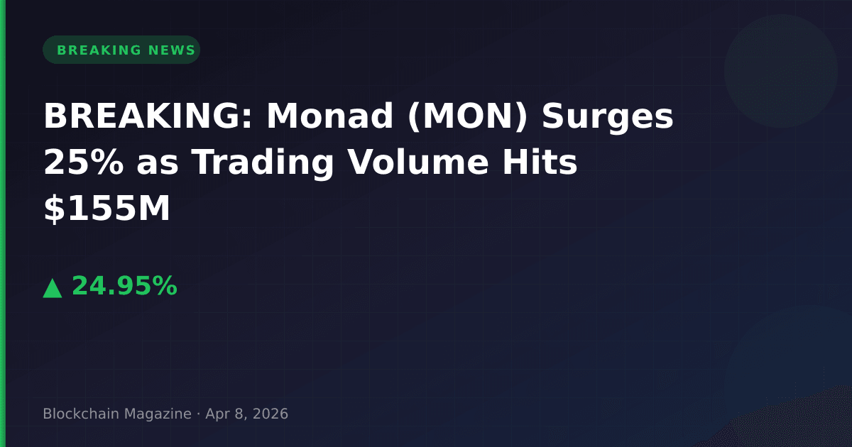 BREAKING NEWS: Monad (MON), the blockchain infrastructure project, has experienced a dramatic 25% price surge in the past 24 hours, reaching $0.03255122 as of April 8, 2026, at 12:21 UTC.
