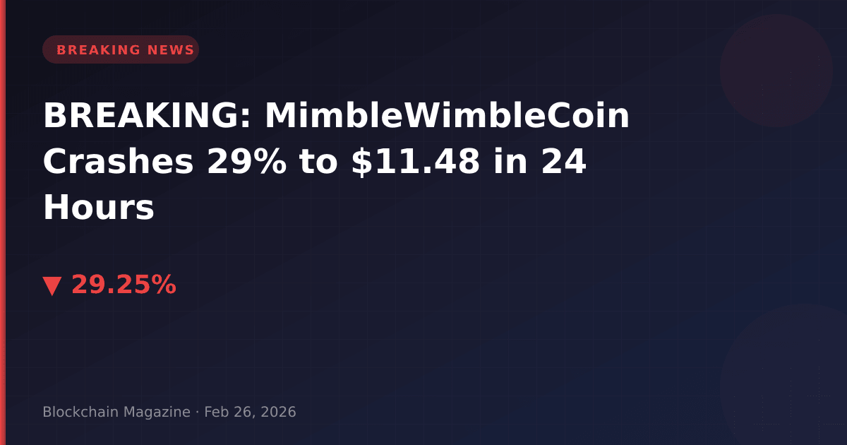MimbleWimbleCoin (MWC) has experienced a dramatic collapse, plunging 29.24% to $11.48 in the past 24 hours as of February 26, 2026, marking one of the steepest declines among major privacy-focused cryptocurrencies.
